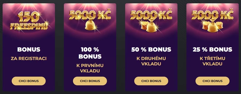 - Bonus 25 % až do výše 5 000 Kč při třetím vkladu.